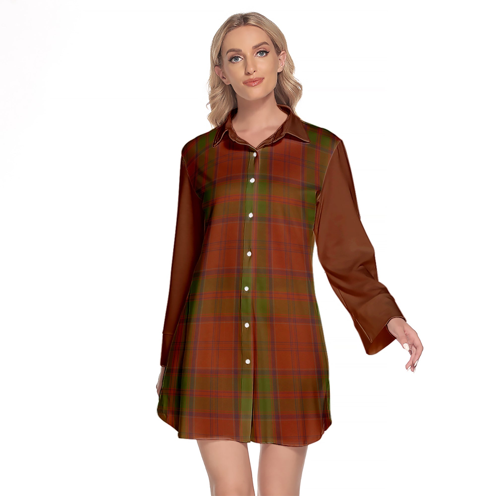 Drummond Ancient Tartan Women's Lapel Shirt Dress With Long Sleeve