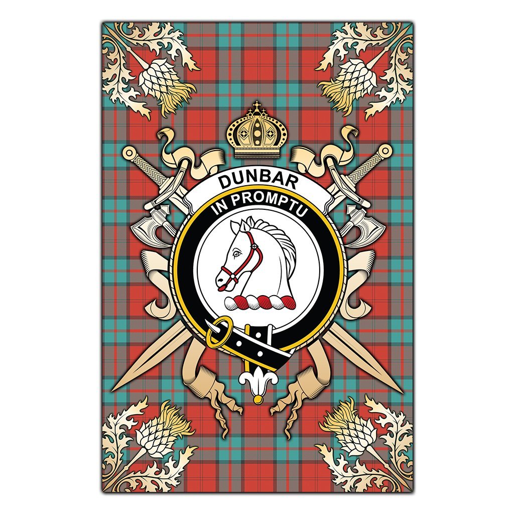 Dunbar Ancient Tartan Crest Black Garden Flag - Gold Thistle Style