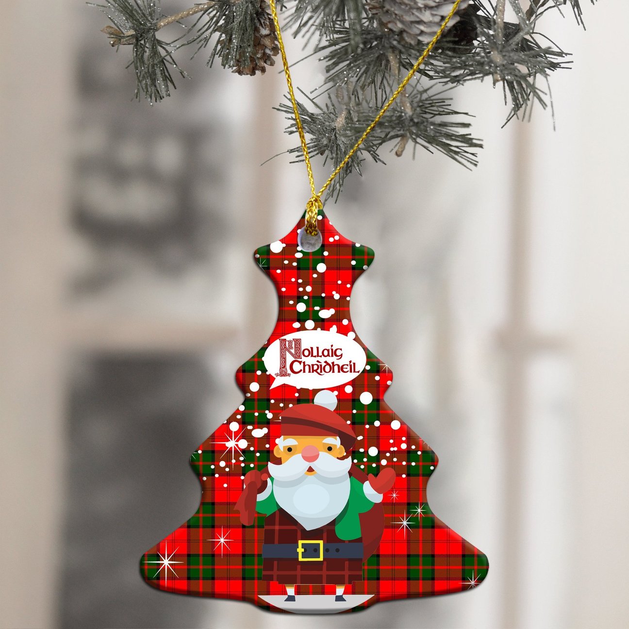 Dunbar Modern Tartan Christmas Ceramic Ornament - Santa Style