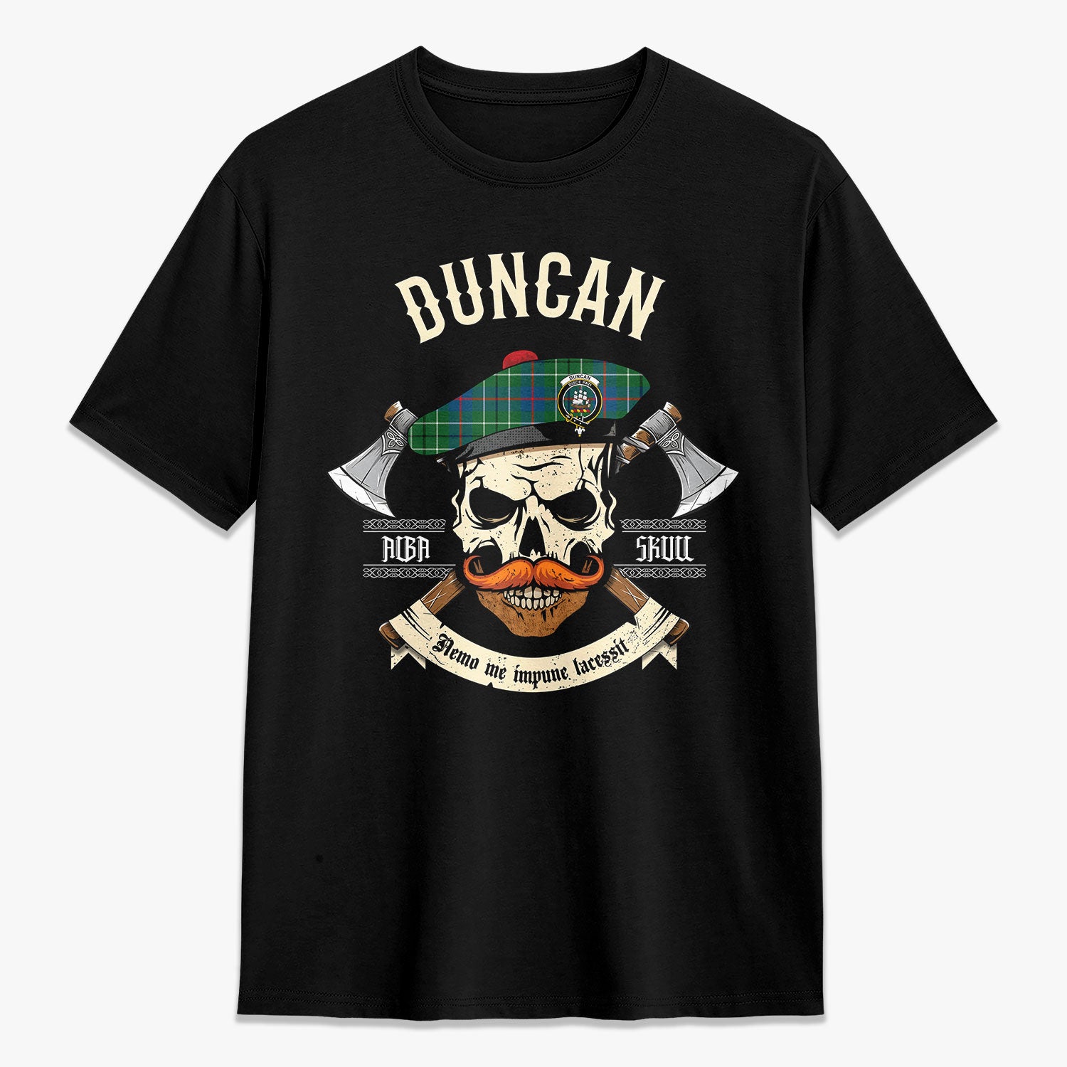 Duncan Ancient Tartan Crest 2D T-shirt - Alba Skull Style,