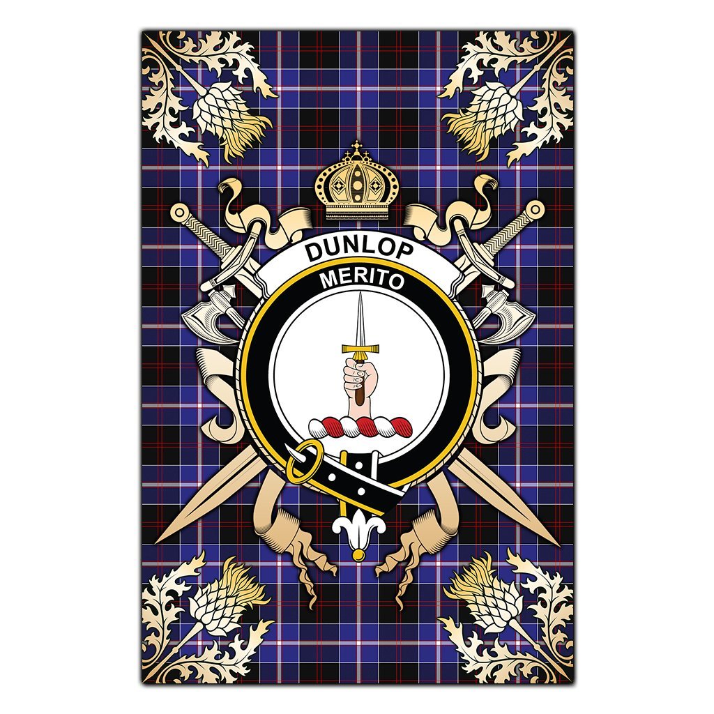 Dunlop Modern Tartan Crest Black Garden Flag - Gold Thistle Style