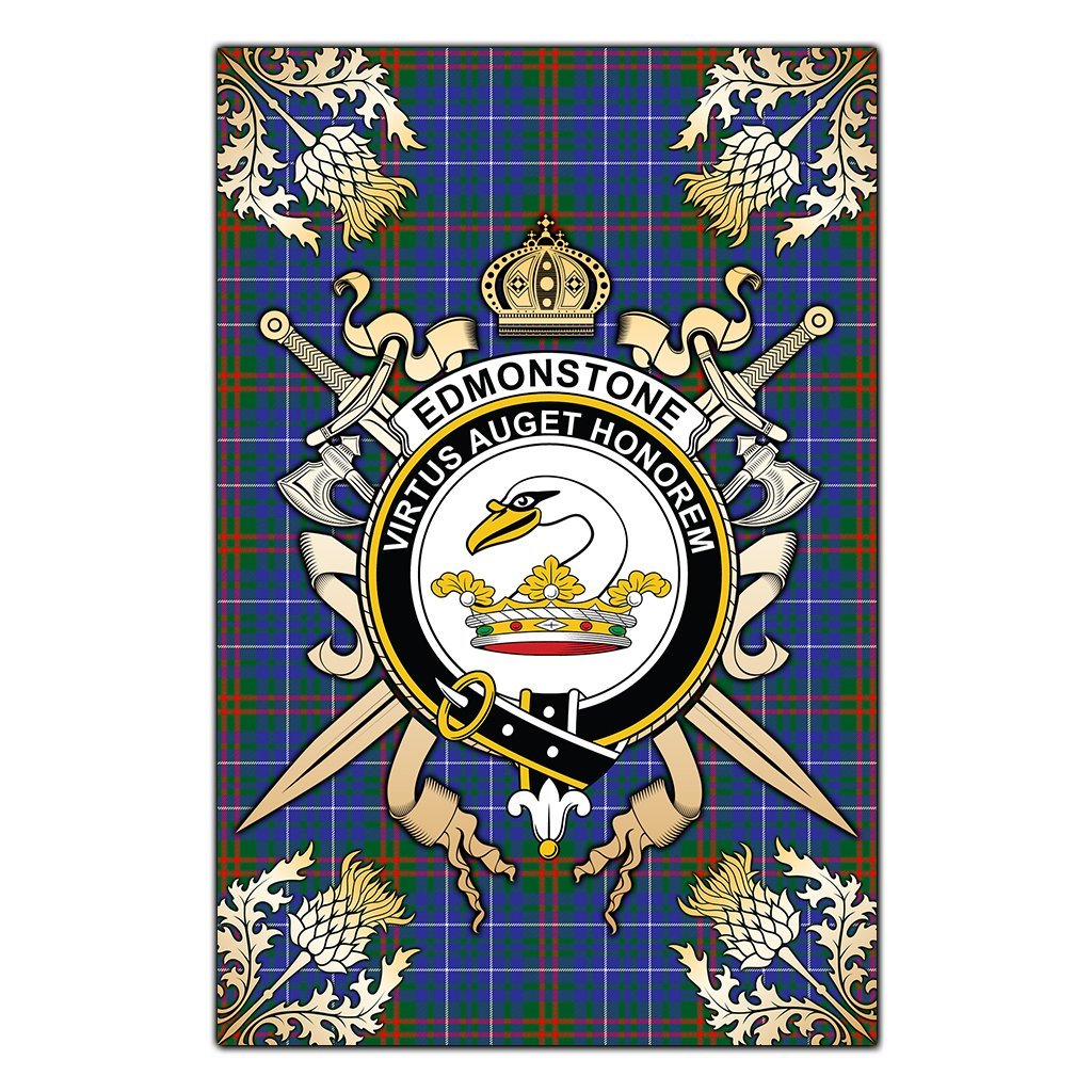 Edmonstone Tartan Crest Black Garden Flag - Gold Thistle Style