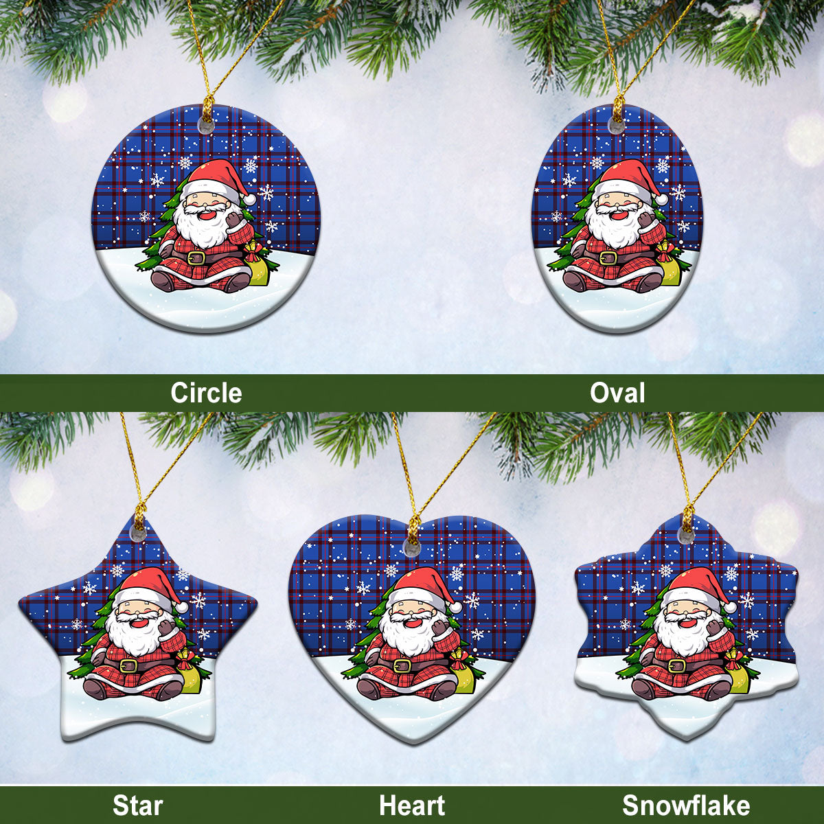 Elliot Modern Tartan Christmas Ceramic Ornament - Scottish Santa Style