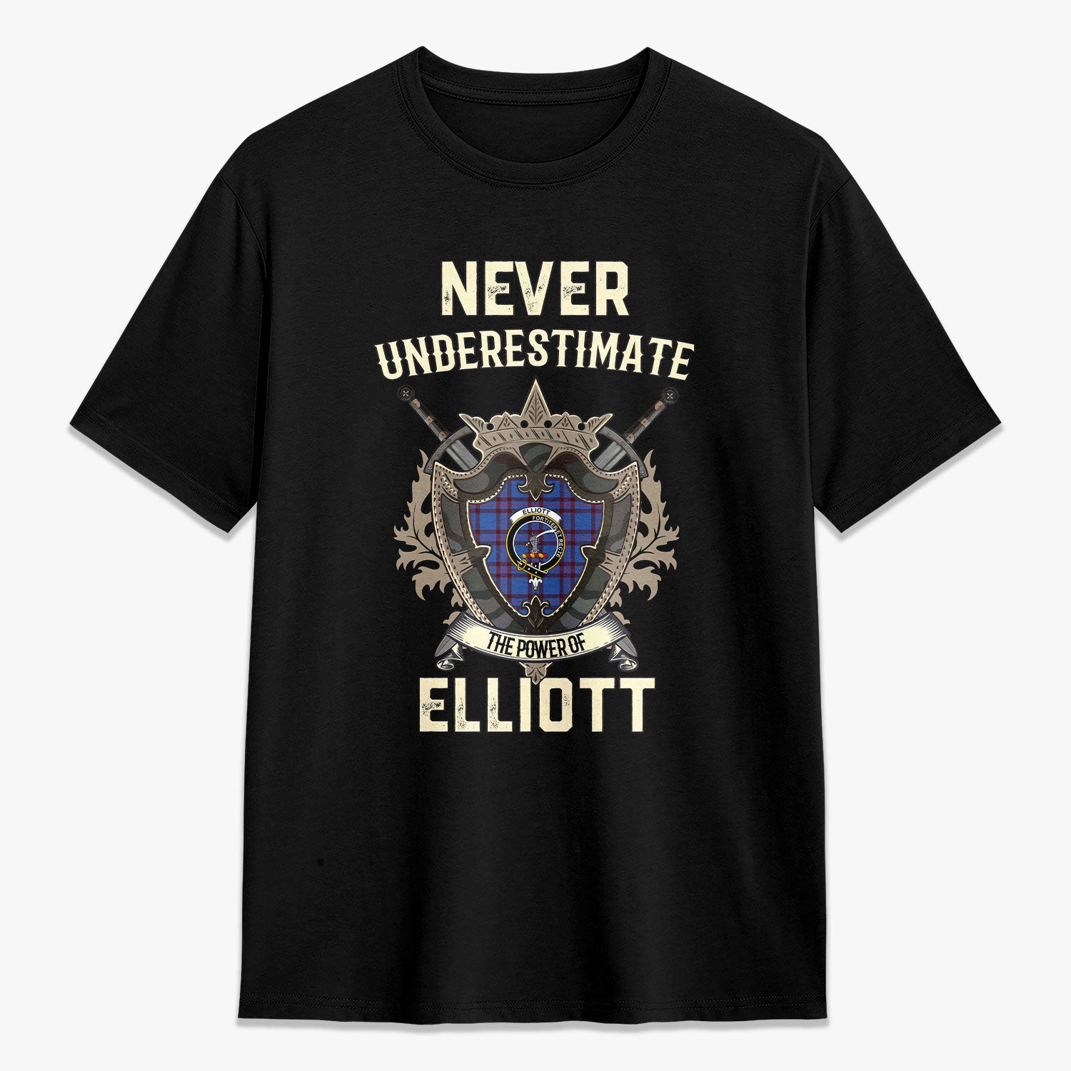 Elliott Modern Tartan Crest 2D T-shirt - Never Underestimate Style