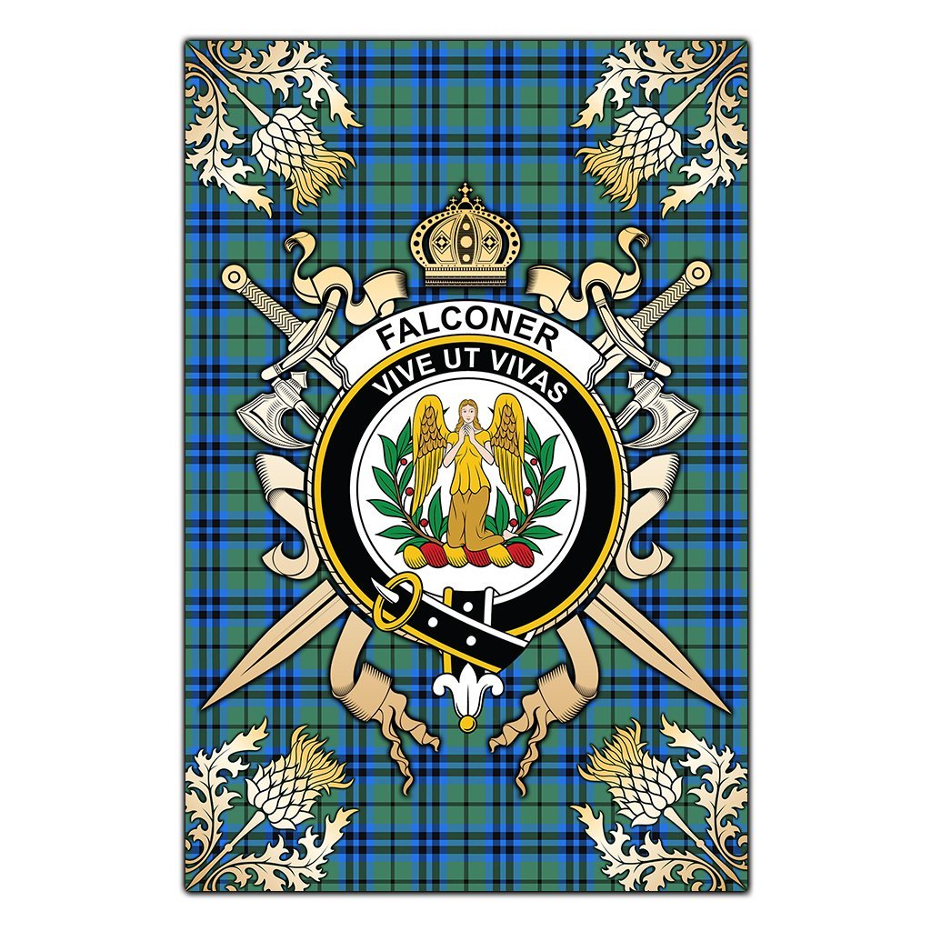 Falconer Tartan Crest Black Garden Flag - Gold Thistle Style