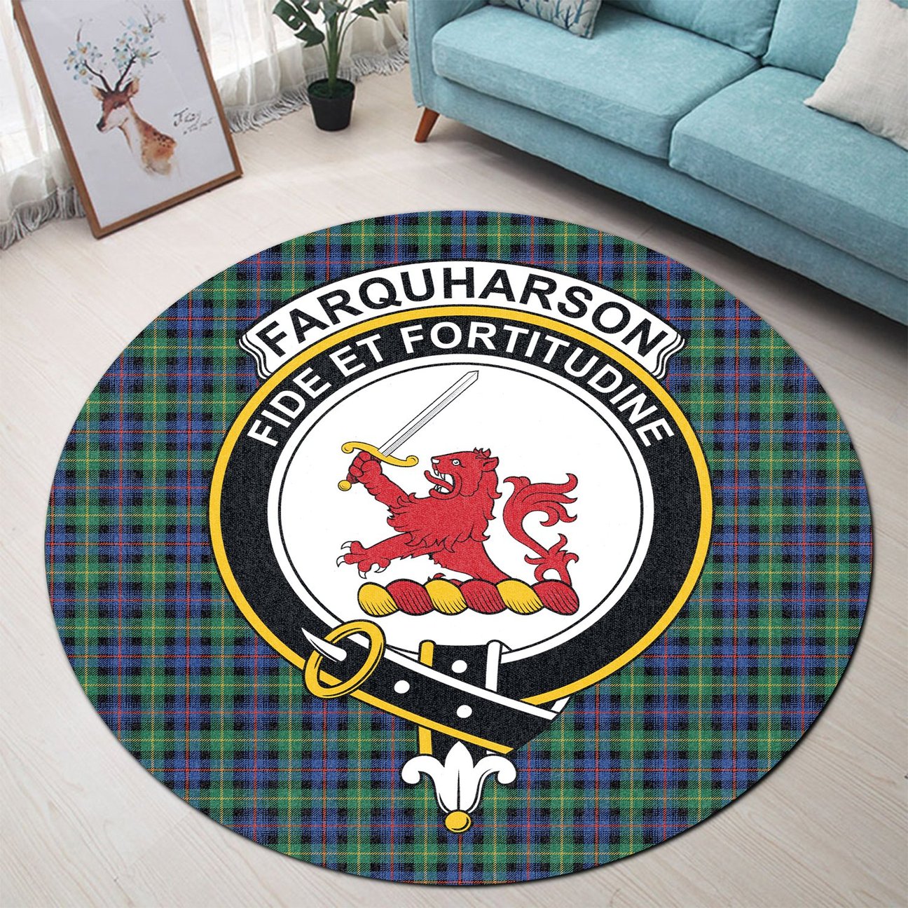 Farquharson Ancient Tartan Crest Round Rug