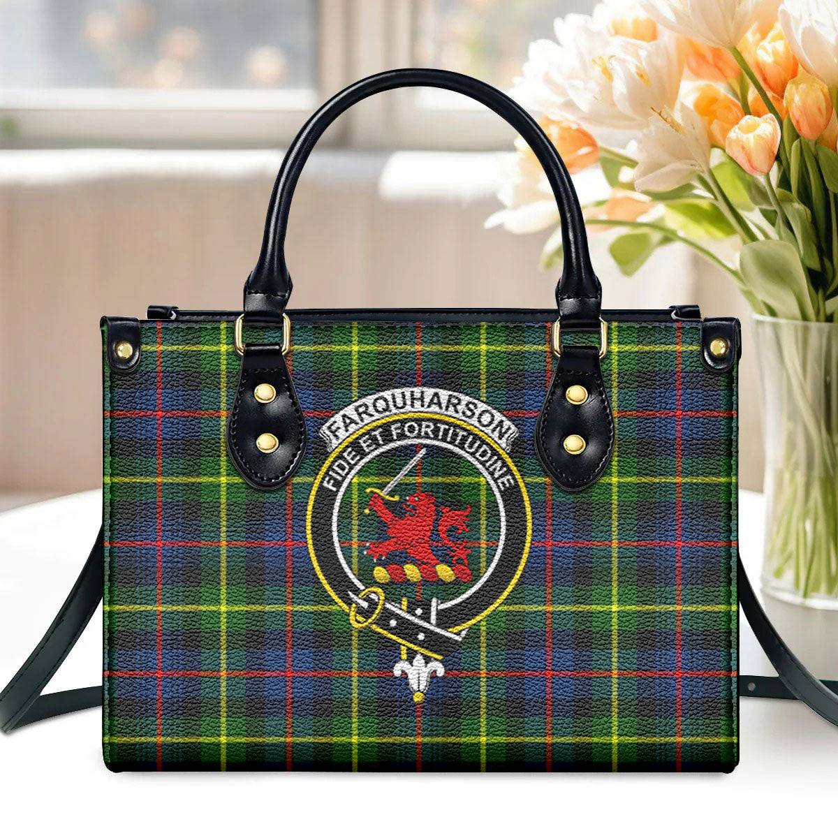 Farquharson Modern Tartan Crest Leather Handbag