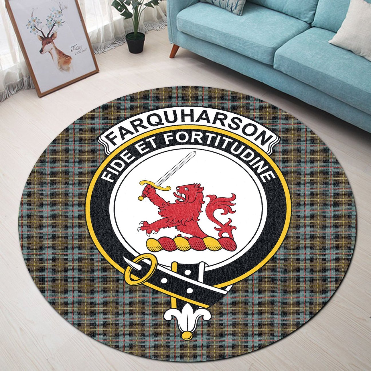 Farquharson Weathered Tartan Crest Round Rug