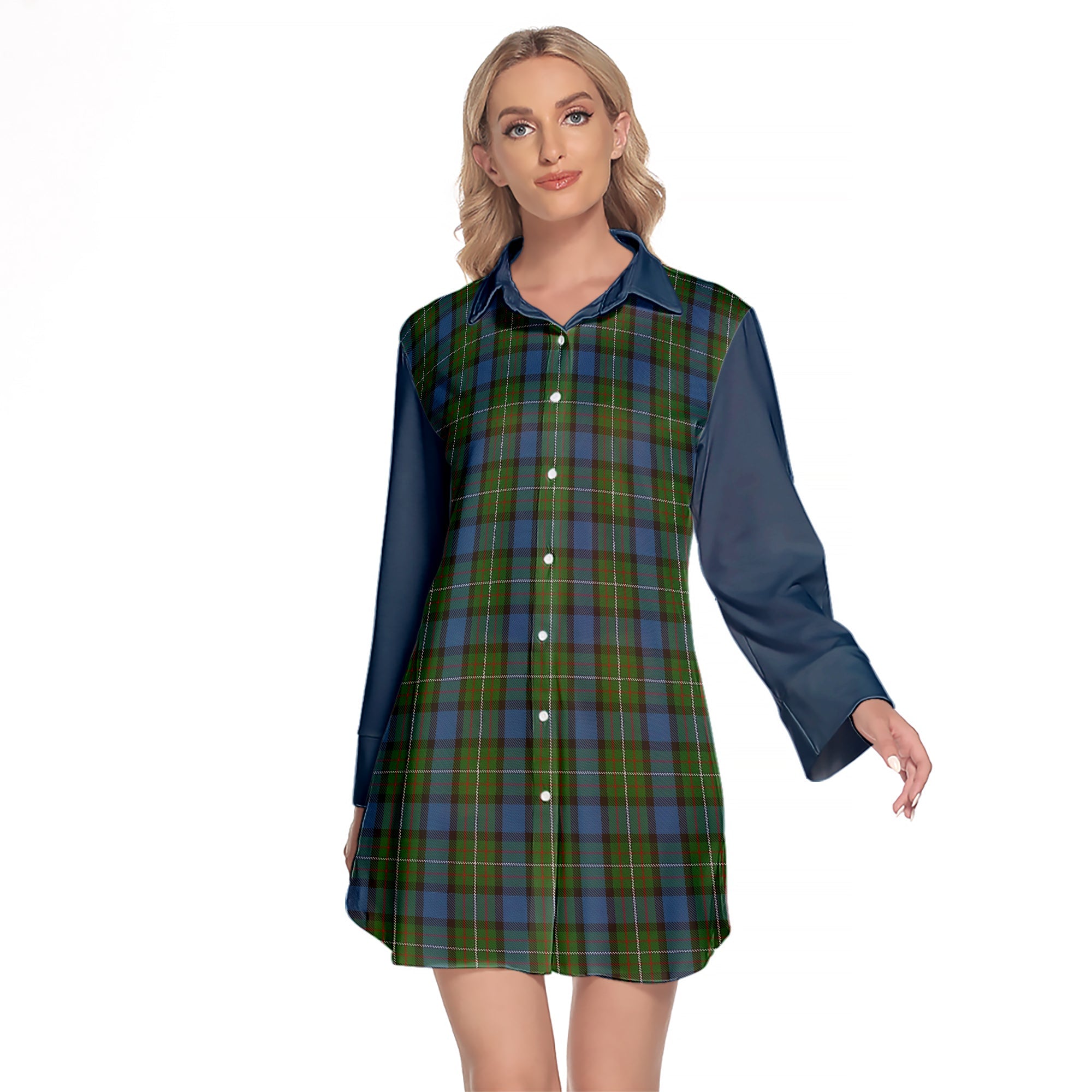 Ferguson Of Atholl Tartan Women's Lapel Shirt Dress With Long Sleeve