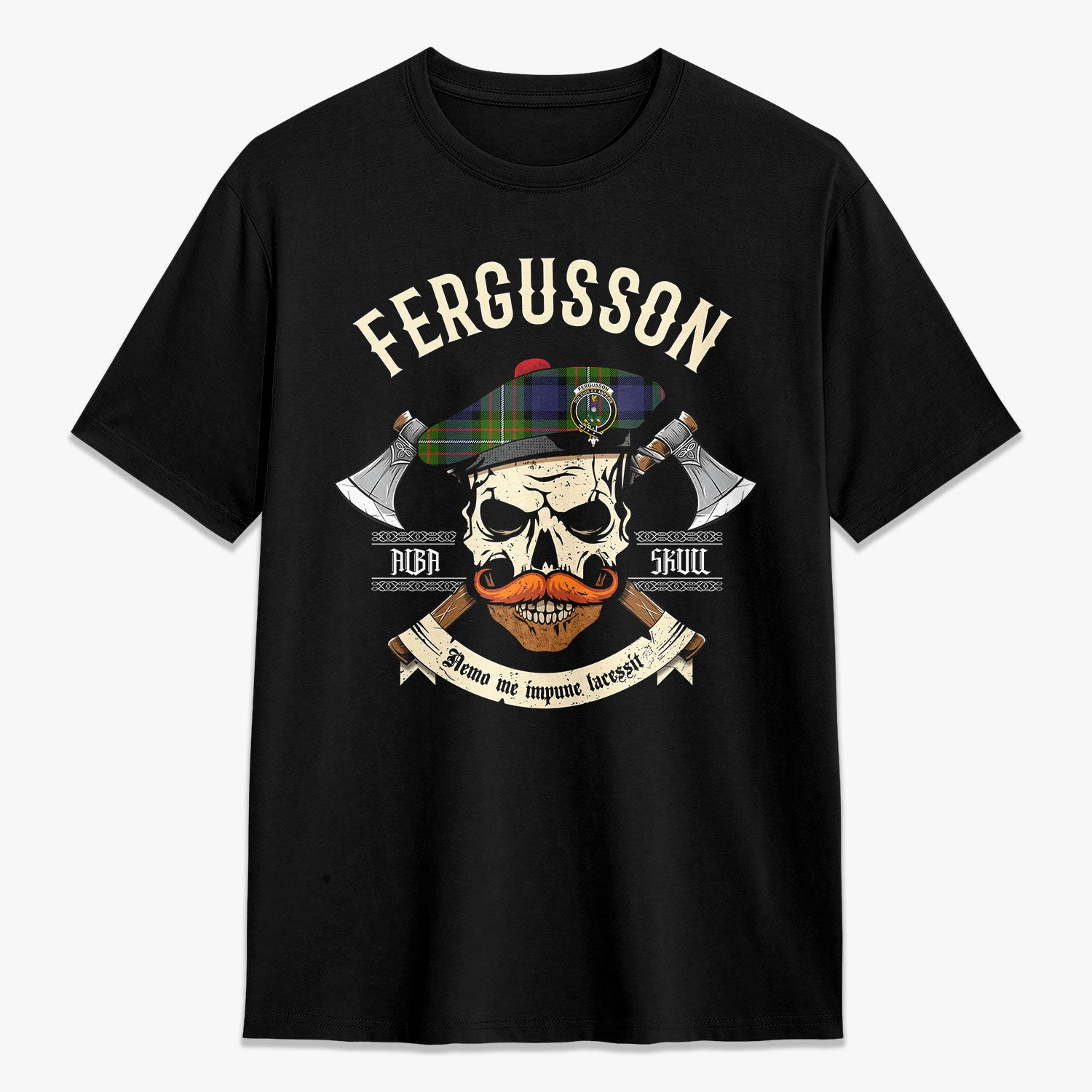 Fergusson Modern Tartan Crest 2D T-shirt - Alba Skull Style,