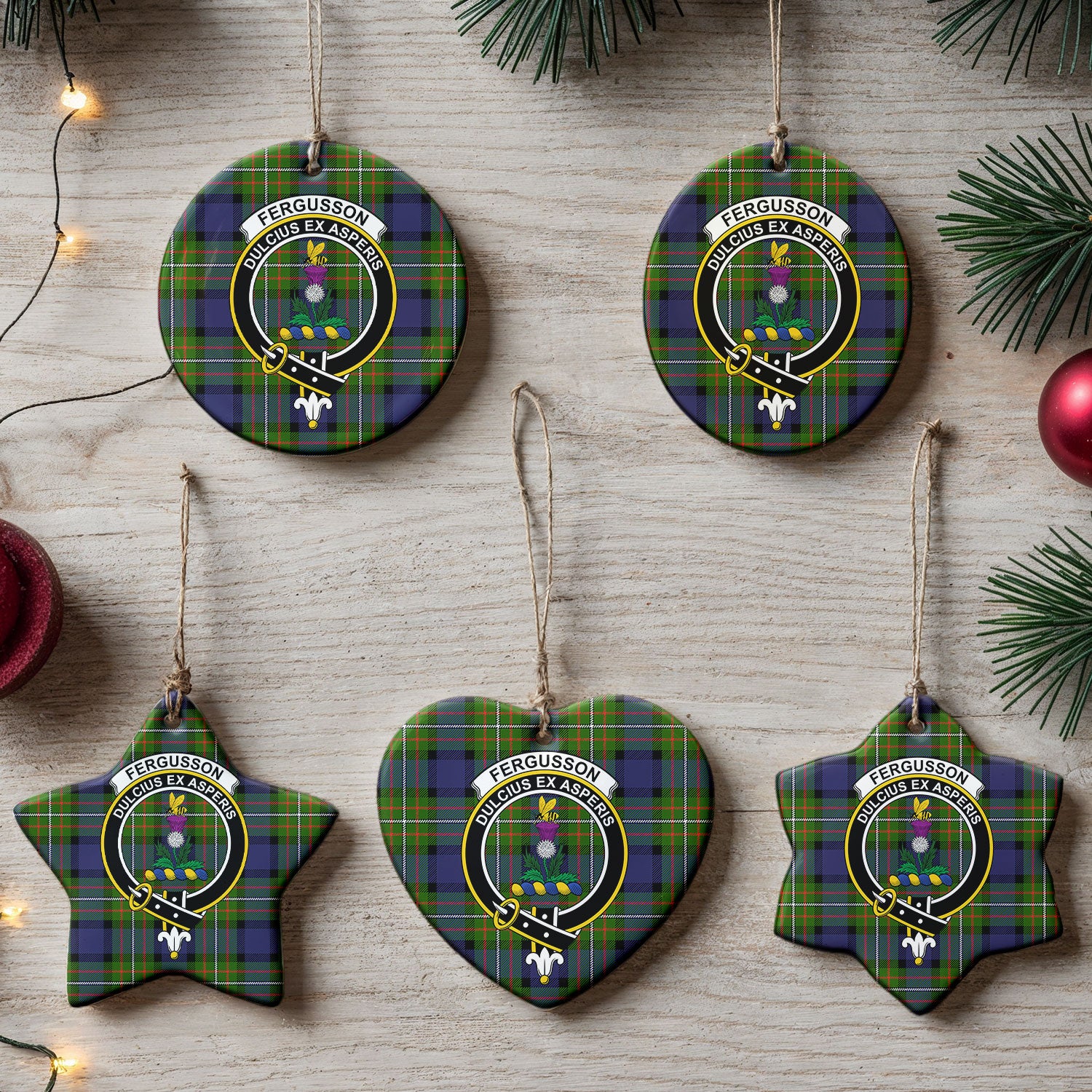Fergusson Modern Tartan Crest Christmas Ceramic Ornament
