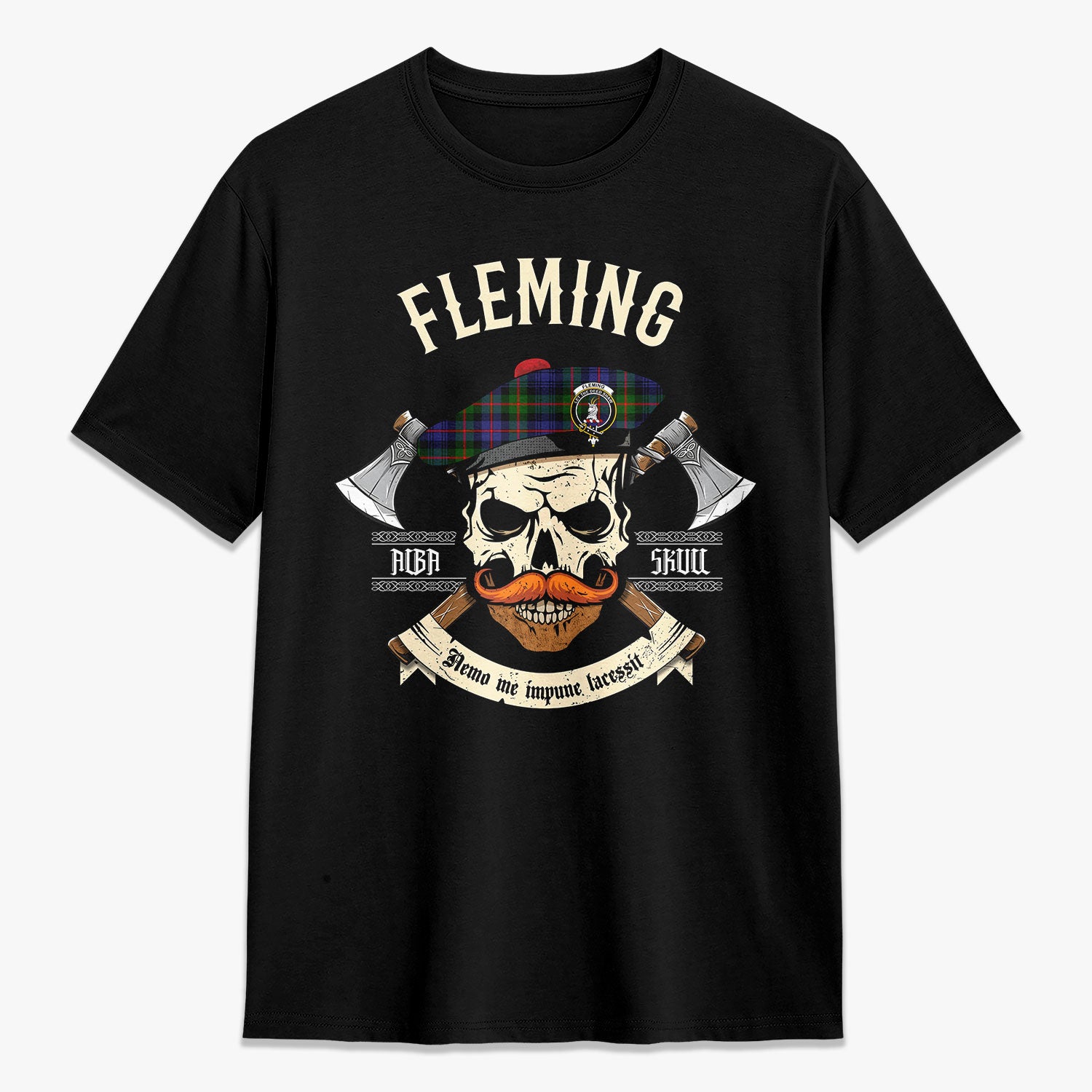 Fleming Tartan Crest 2D T-shirt - Alba Skull Style,