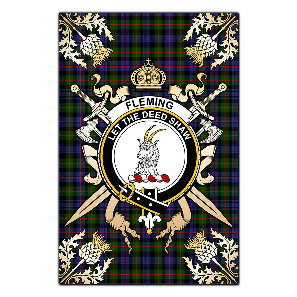 Fleming Tartan Crest Black Garden Flag - Gold Thistle Style