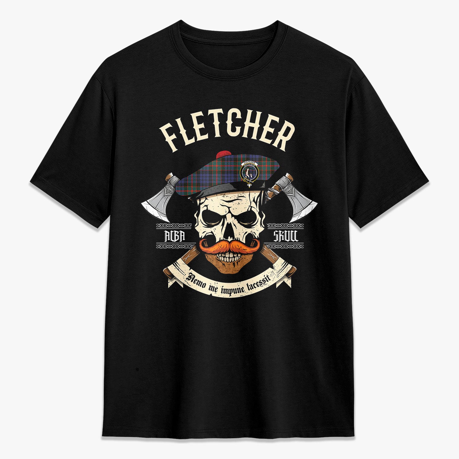 Fletcher of Dunans Tartan Crest 2D T-shirt - Alba Skull Style,