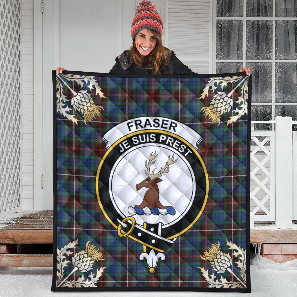 Fraser Hunting Ancient Tartan Crest Premium Quilt - Gold Thistle Style