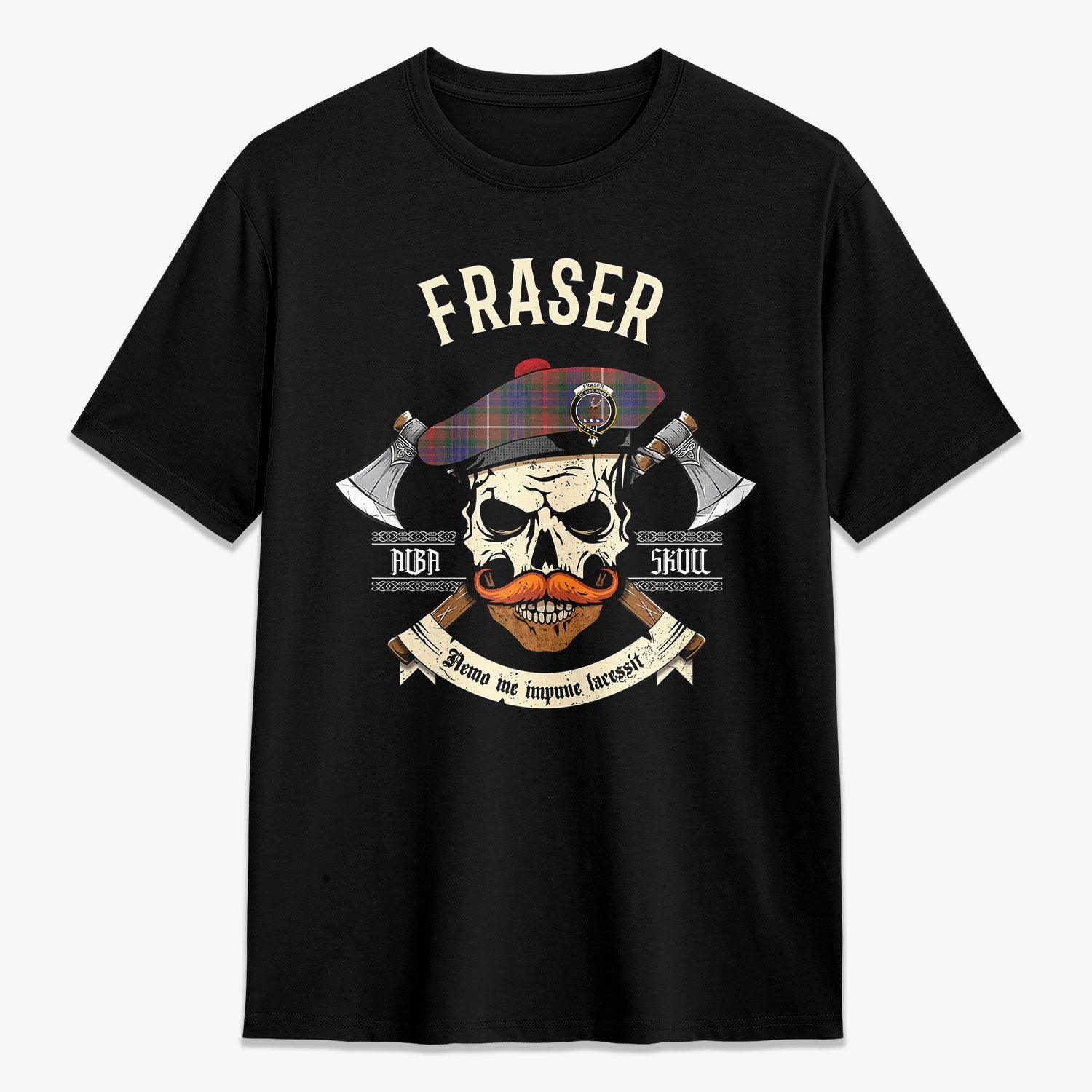 Fraser (of Lovat) Hunting Modern Tartan Crest 2D T-shirt - Alba Skull Style