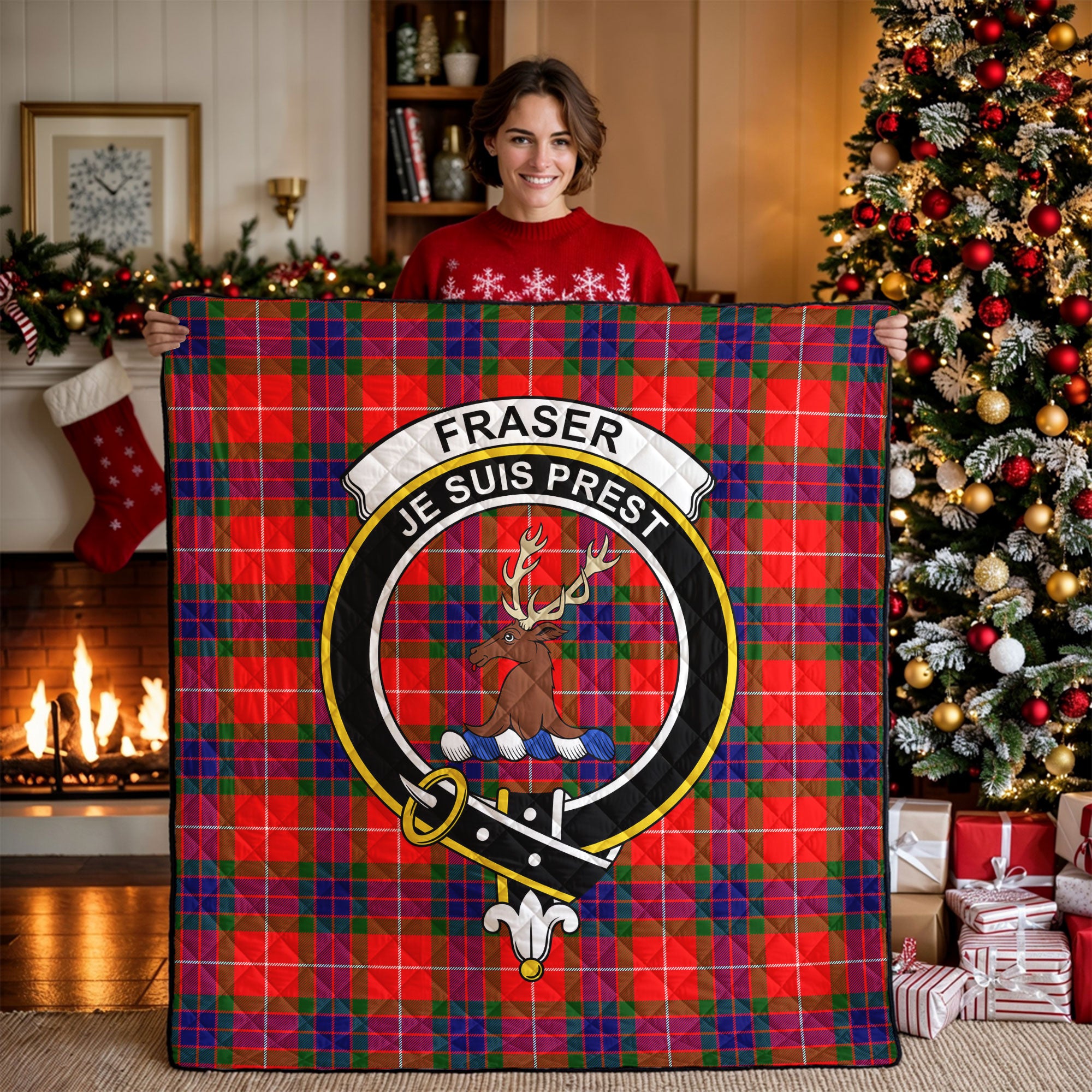 Fraser (of Lovat) Modern Tartan Crest Quilt