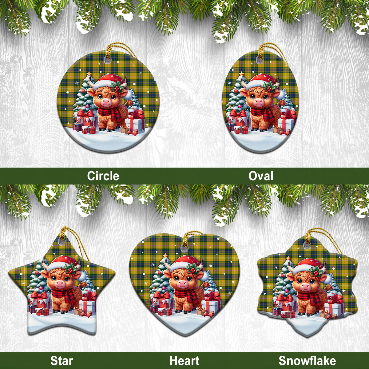 Fraser (of Lovat) Yellow Tartan Christmas Ceramic Ornament - Highland Cow Winter Style