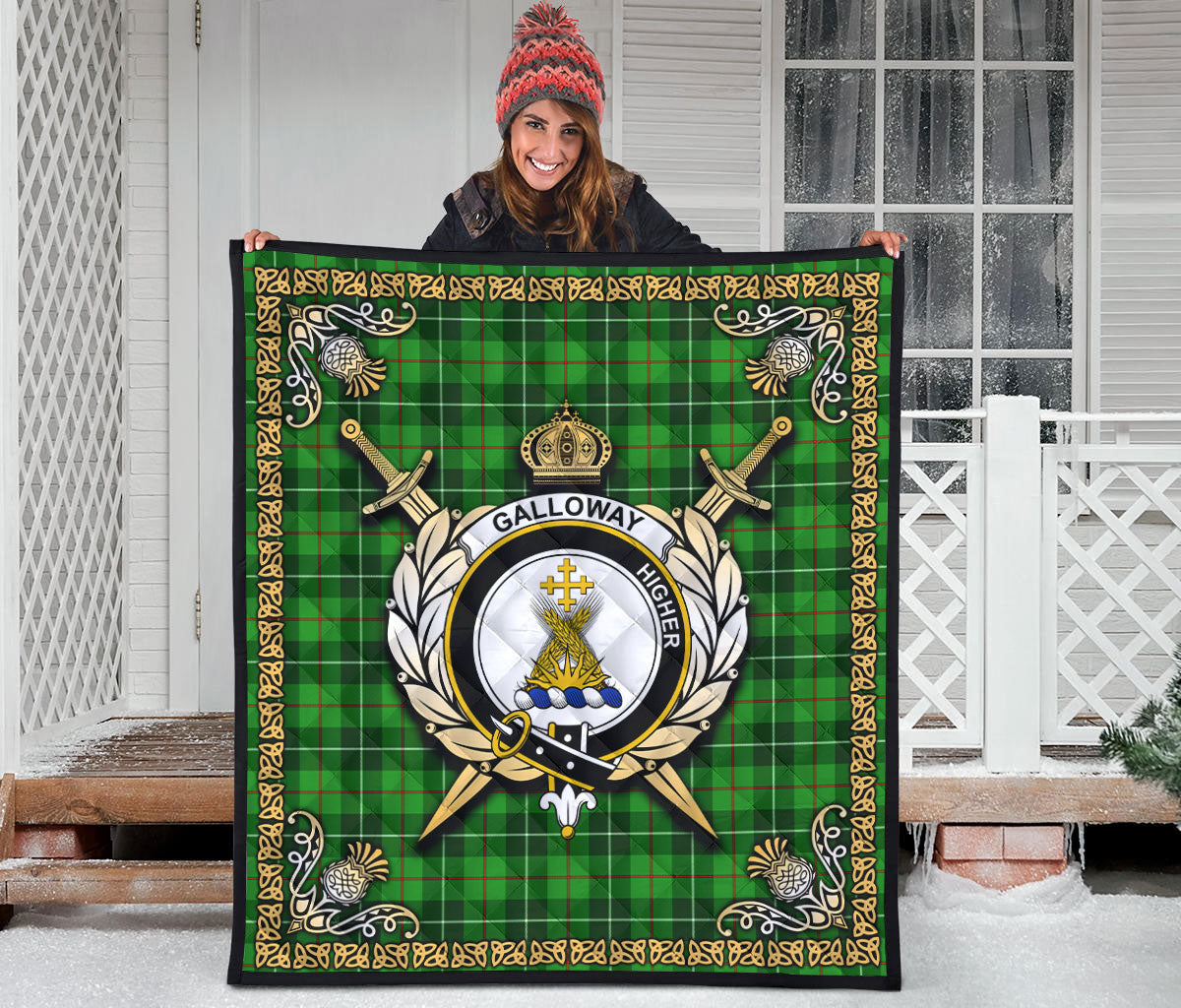 Galloway District Tartan Crest Premium Quilt - Celtic Thistle Style