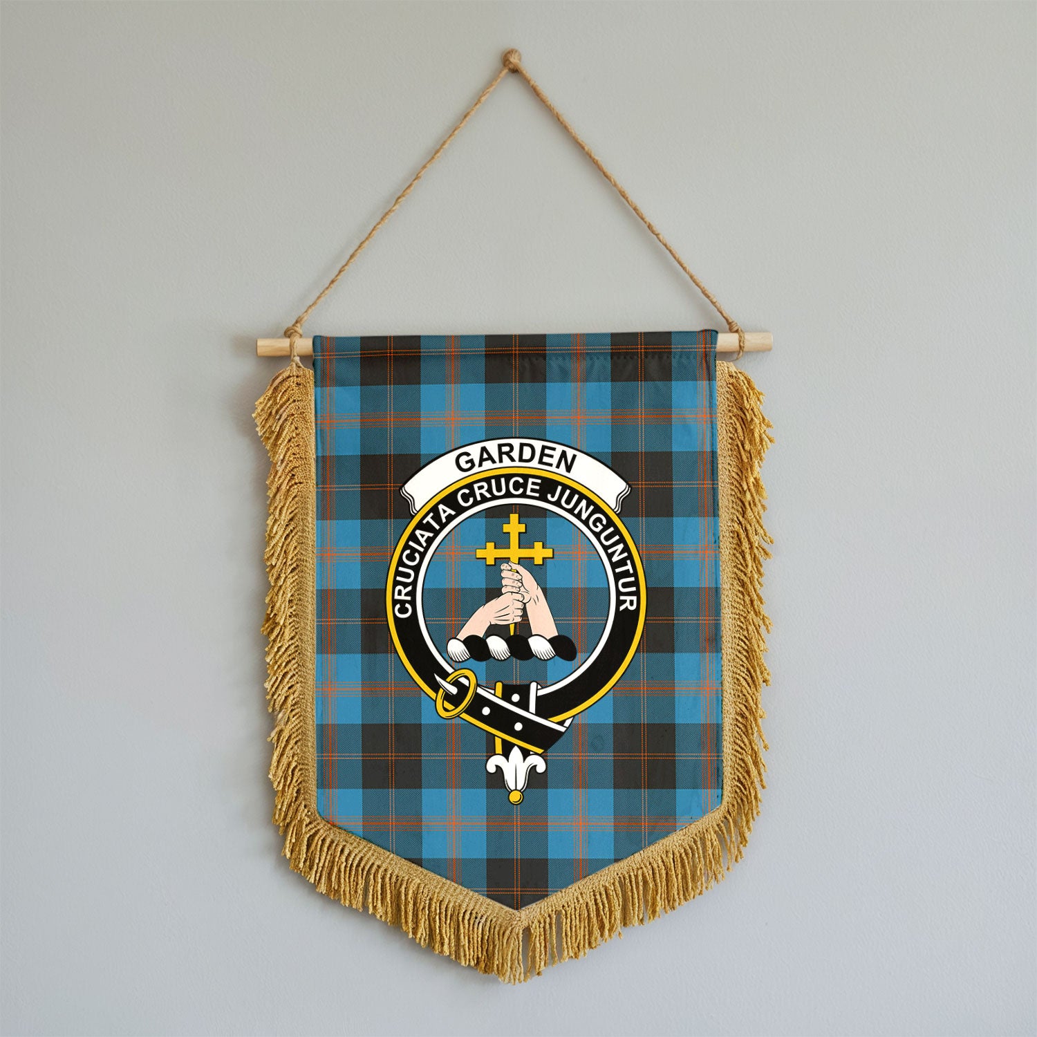 Garden Tartan Crest Wall Hanging Banner - Wood Pole