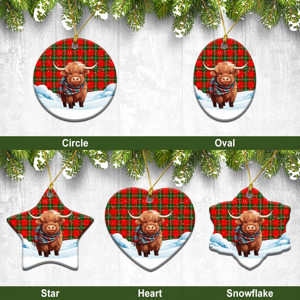 Gartshore Tartan Christmas Ceramic Ornament - Highland Cows Snow Style
