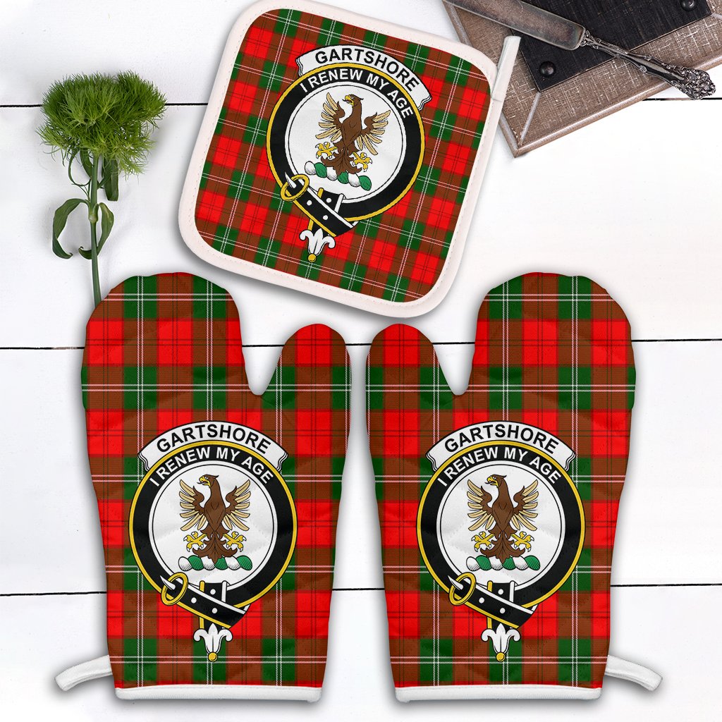 Gartshore Tartan Crest Oven Mitt And Pot Holder (2 Oven Mitts + 1 Pot Holder)