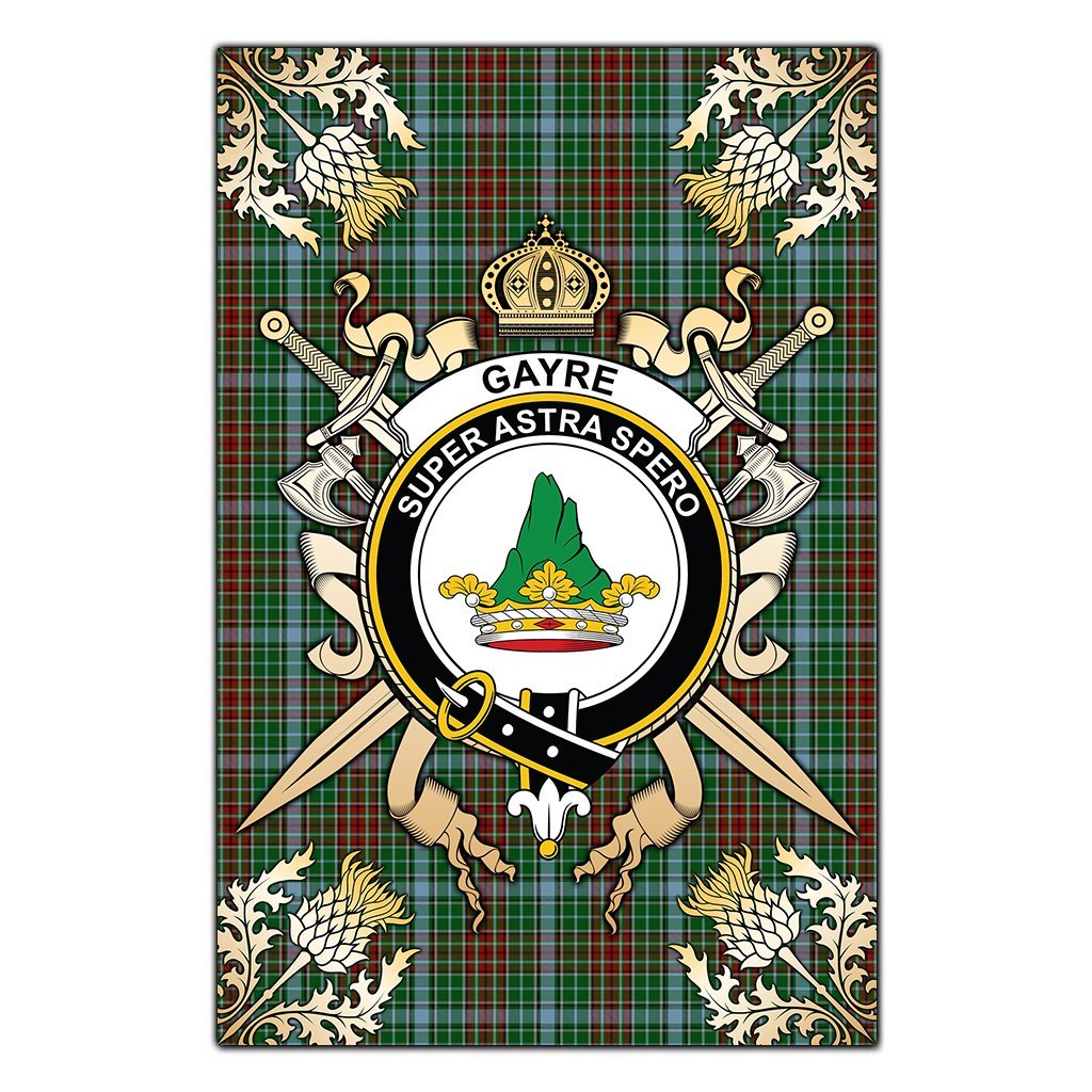 Gayre Tartan Crest Black Garden Flag - Gold Thistle Style