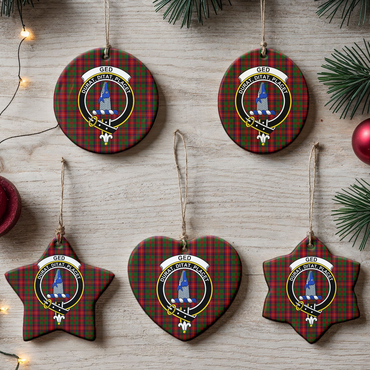 Ged Tartan Crest Christmas Ceramic Ornament
