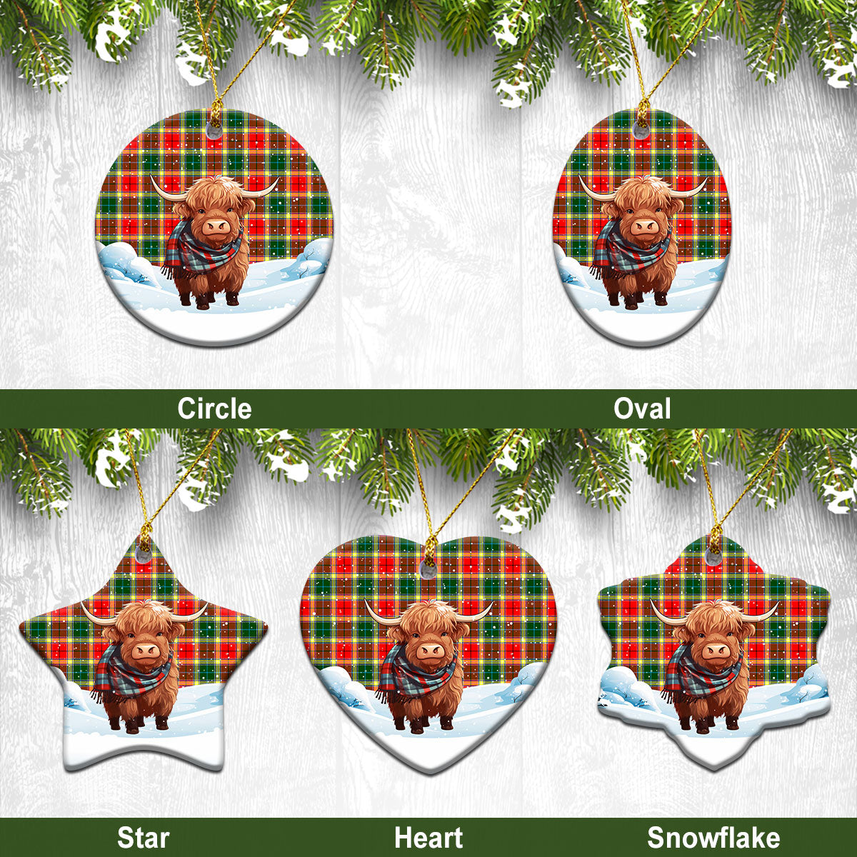 Gibson Tartan Christmas Ceramic Ornament - Highland Cows Snow Style