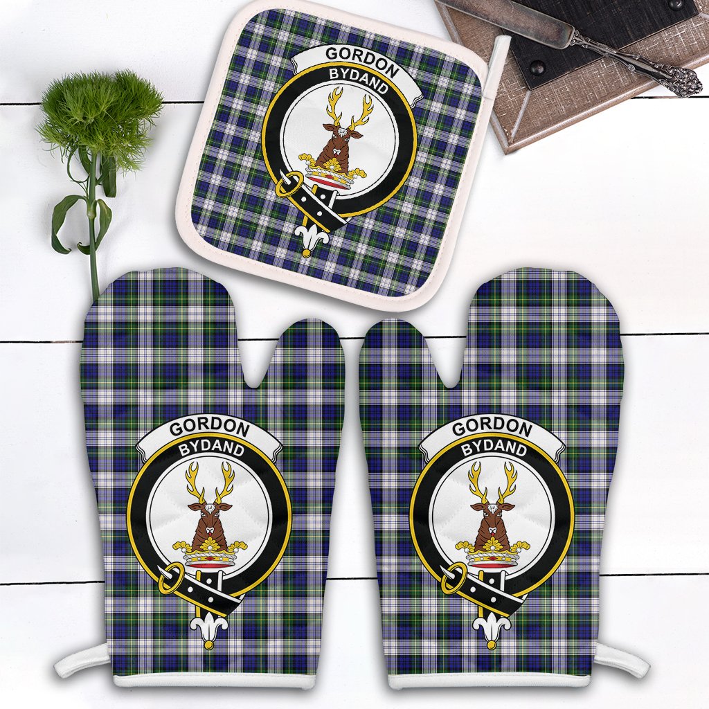 Gordon Dress Modern Tartan Crest Oven Mitt And Pot Holder (2 Oven Mitts + 1 Pot Holder)