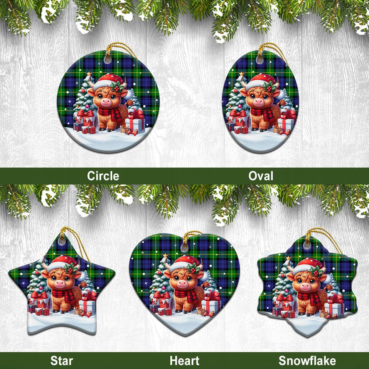 Gordon Modern Tartan Christmas Ceramic Ornament - Highland Cow Winter Style