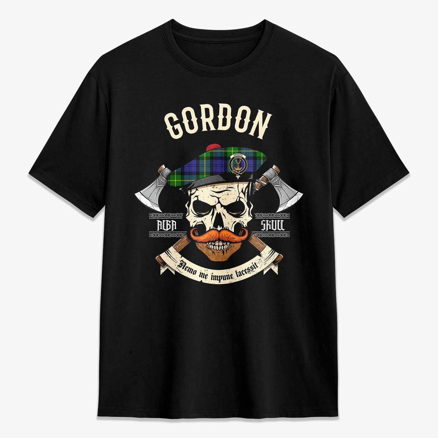 Gordon Modern Tartan Crest 2D T-shirt - Alba Skull Style,