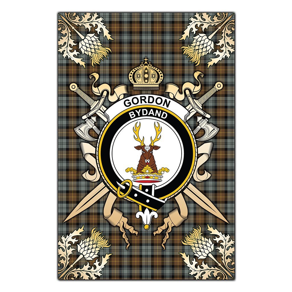 Gordon Weathered Tartan Crest Black Garden Flag - Gold Thistle Style