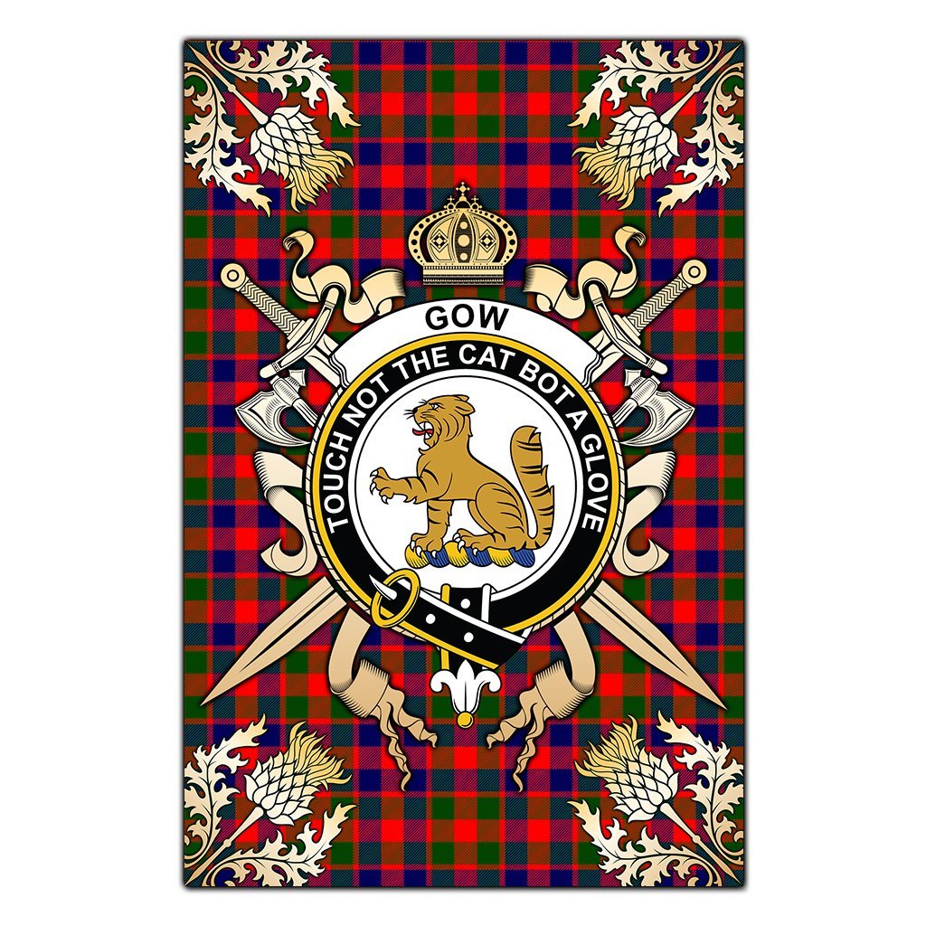 Gow Modern Tartan Crest Black Garden Flag - Gold Thistle Style