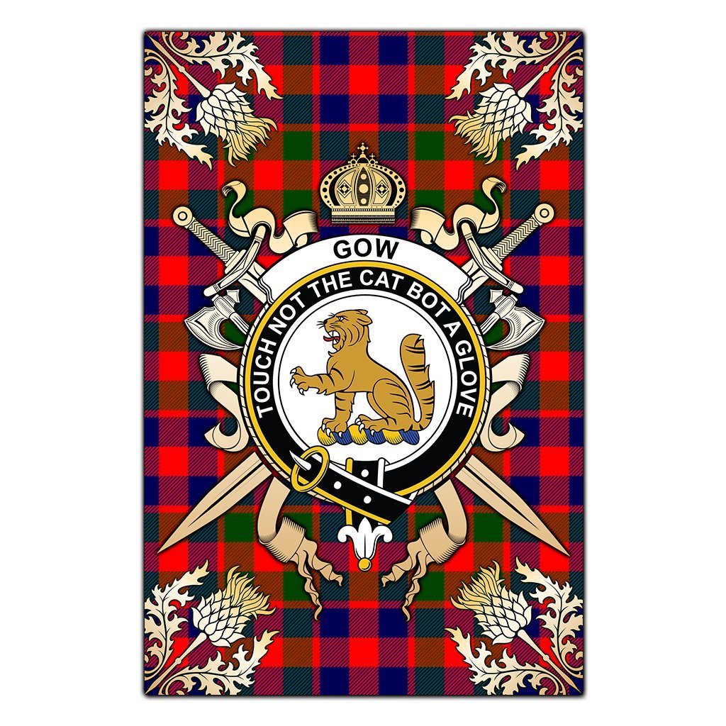 Gow of McGouan Tartan Crest Black Garden Flag - Gold Thistle Style