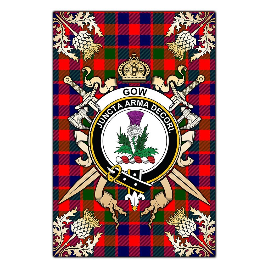 Gow of Skeoch Tartan Crest Black Garden Flag - Gold Thistle Style