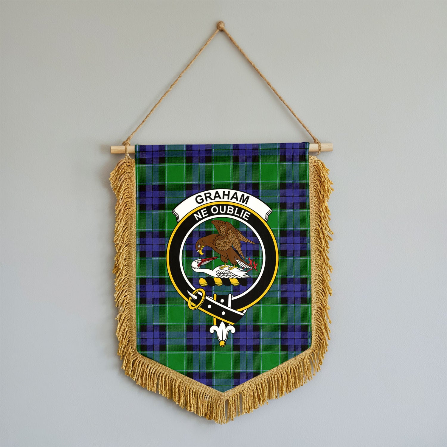 Graham of Menteith Modern Tartan Crest Wall Hanging Banner - Wood Pole