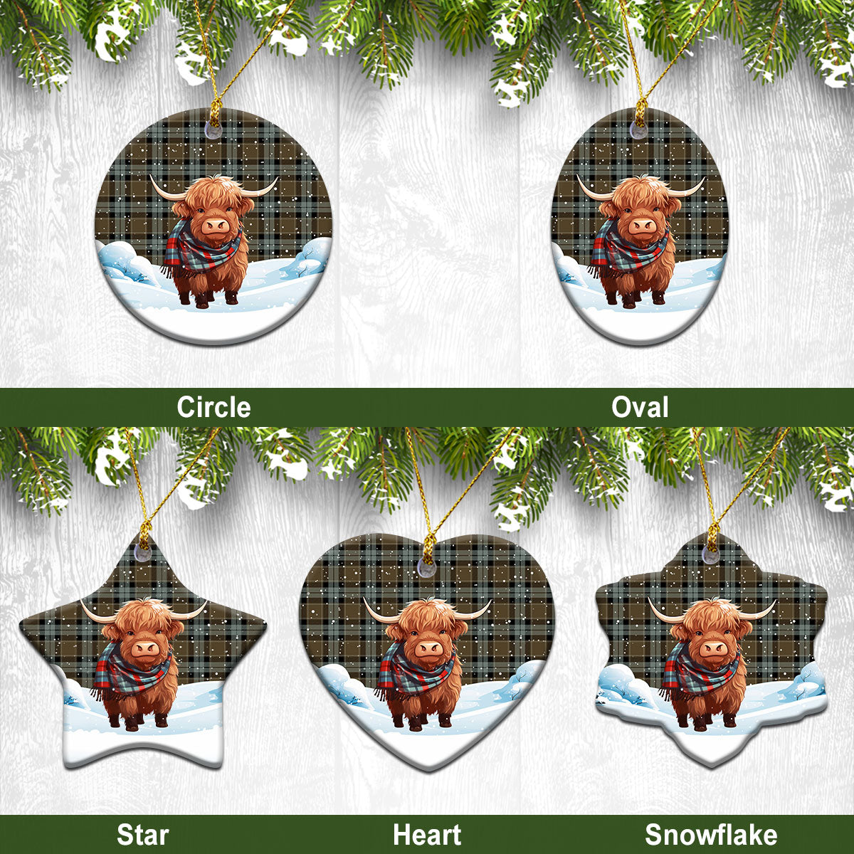 Graham of Menteith Weathered Tartan Christmas Ceramic Ornament - Highland Cows Snow Style
