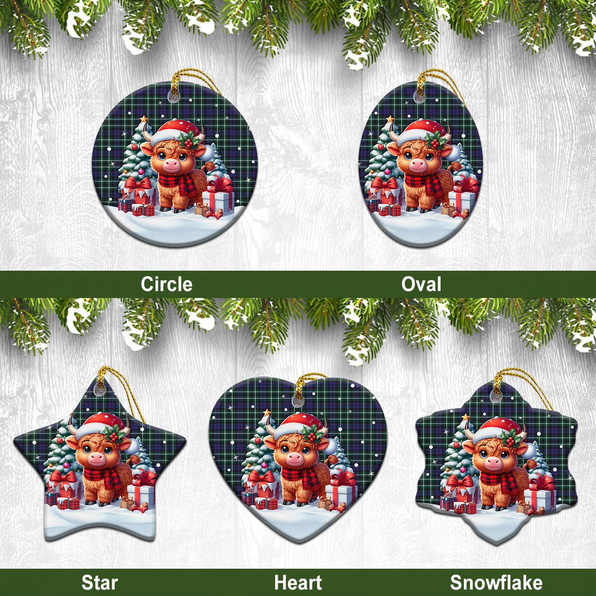 Graham of Montrose Modern Tartan Christmas Ceramic Ornament - Highland Cow Winter Style