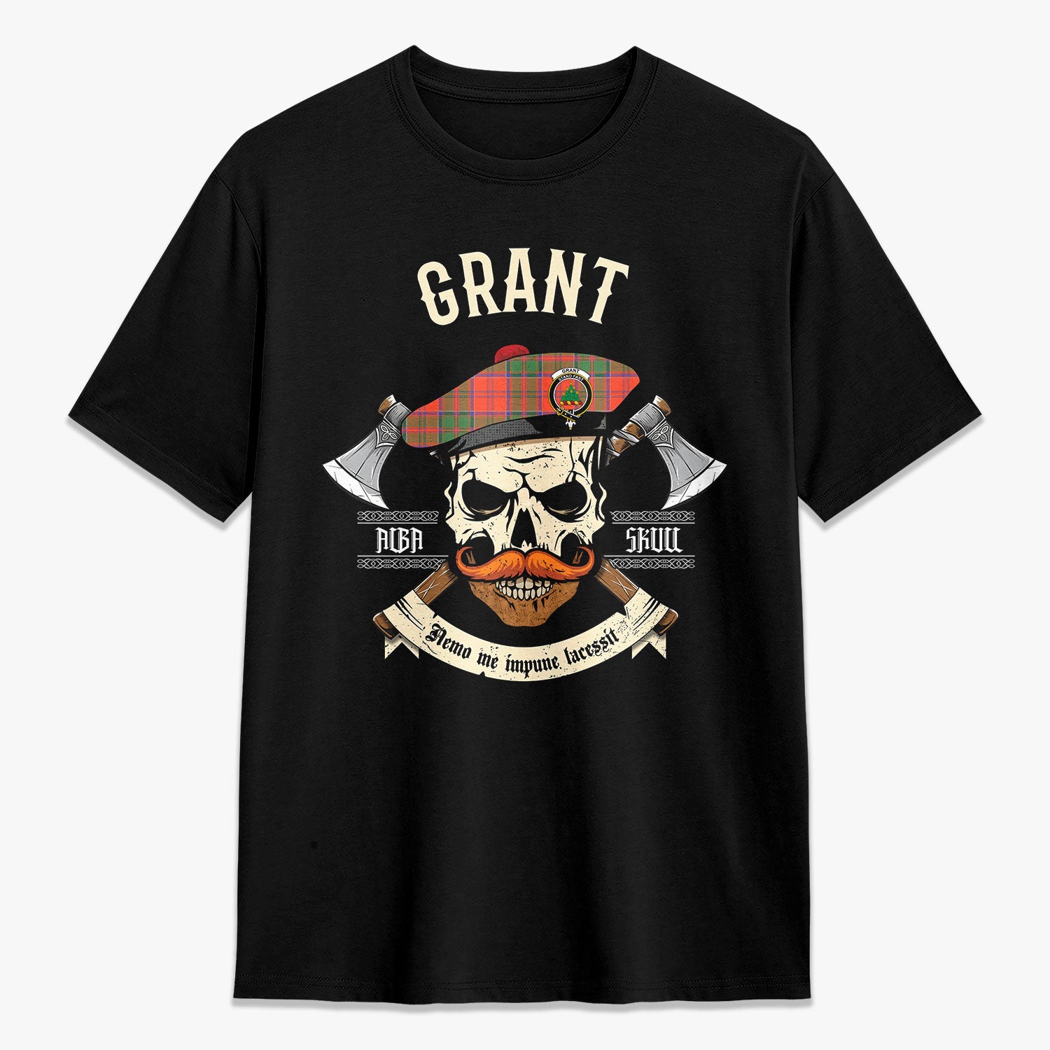 Grant Ancient Tartan Crest 2D T-shirt - Alba Skull Style,