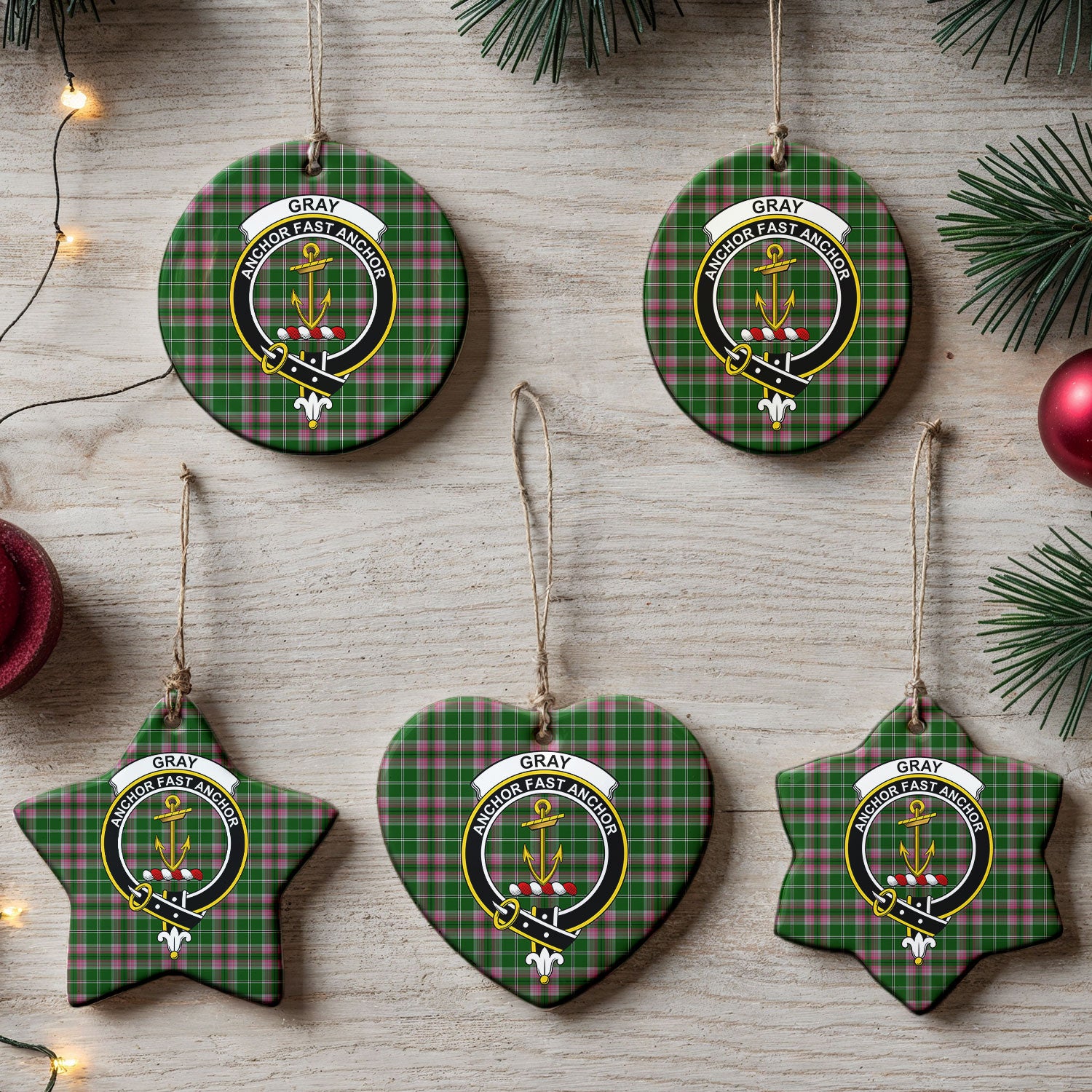 Gray Hunting Tartan Crest Christmas Ceramic Ornament