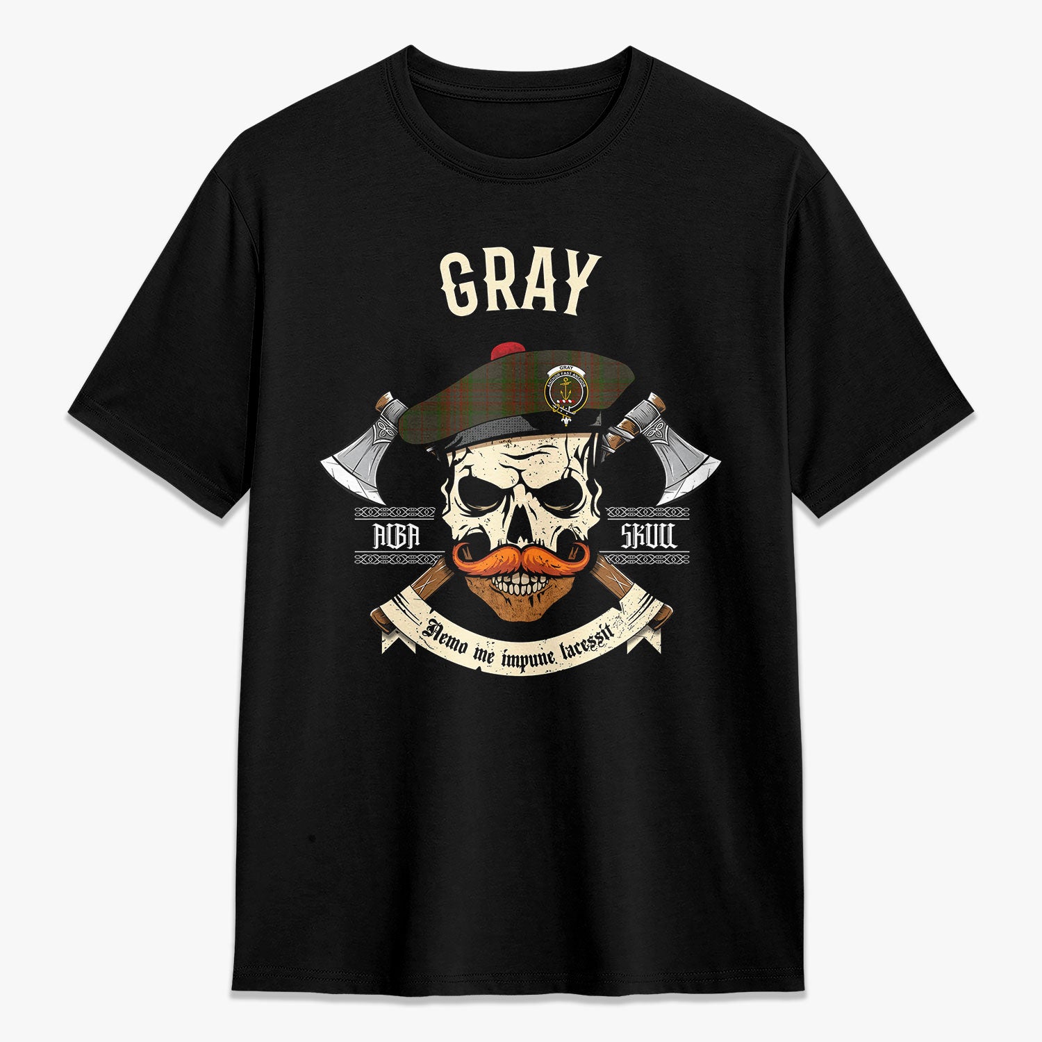 Gray Tartan Crest 2D T-shirt - Alba Skull Style,