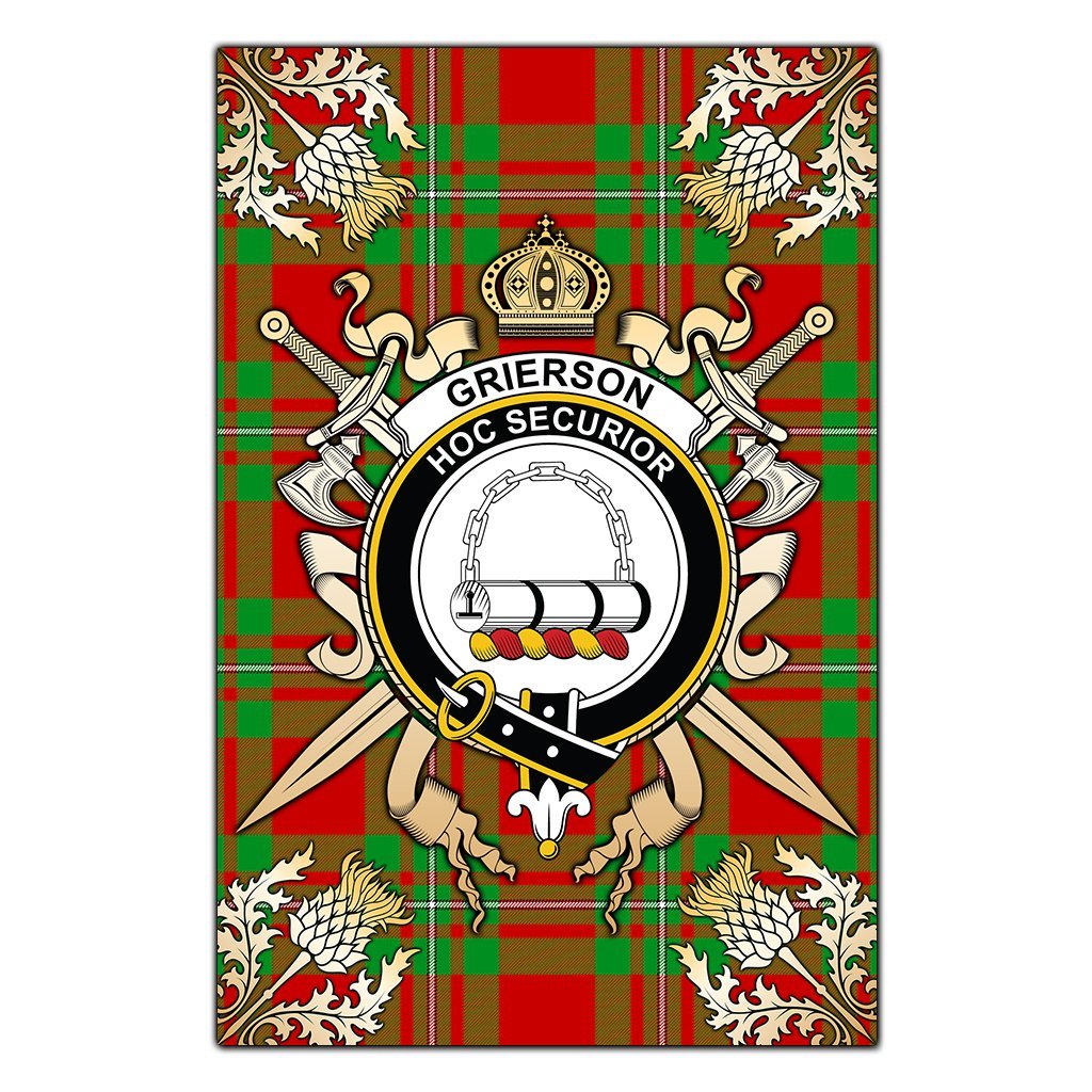 Grierson Tartan Crest Black Garden Flag - Gold Thistle Style