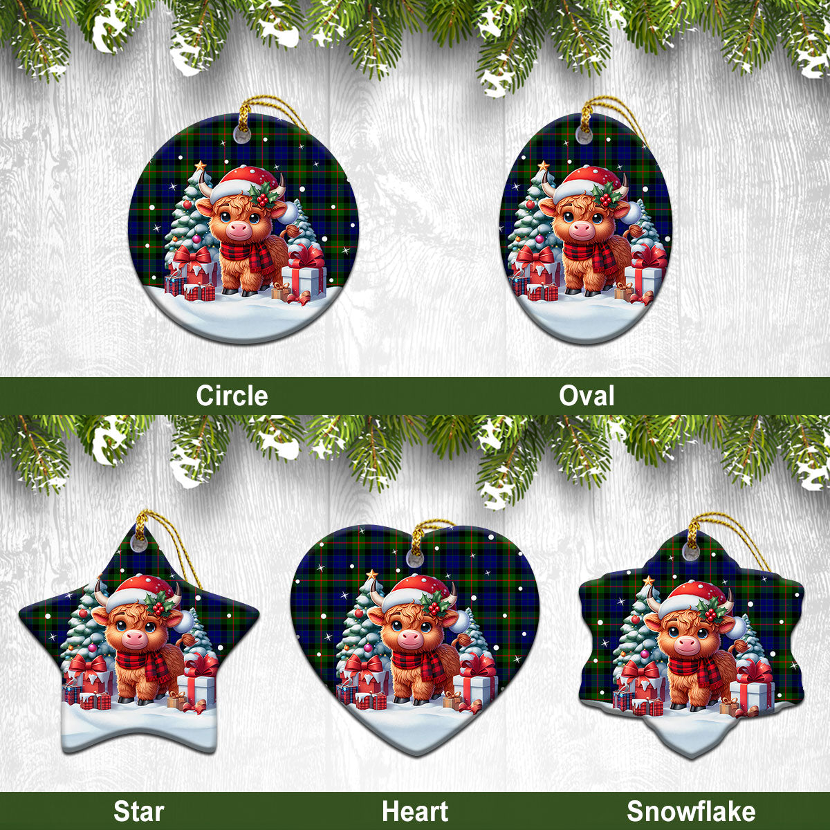 Gunn Modern Tartan Christmas Ceramic Ornament - Highland Cow Winter Style