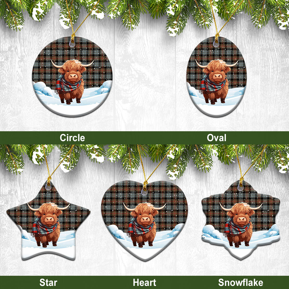 Gunn Weathered Tartan Christmas Ceramic Ornament - Highland Cows Snow Style