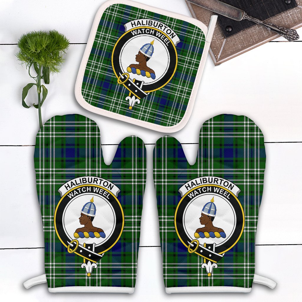 Haliburton Tartan Crest Oven Mitt And Pot Holder (2 Oven Mitts + 1 Pot Holder)