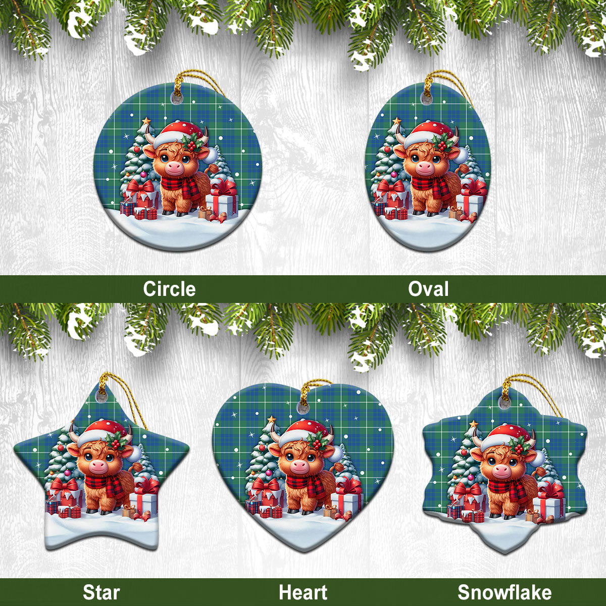 Hamilton Hunting Ancient Tartan Christmas Ceramic Ornament - Highland Cow Winter Style