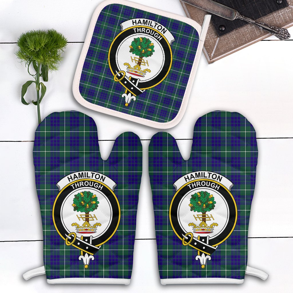 Hamilton Hunting Modern Tartan Crest Oven Mitt And Pot Holder (2 Oven Mitts + 1 Pot Holder)