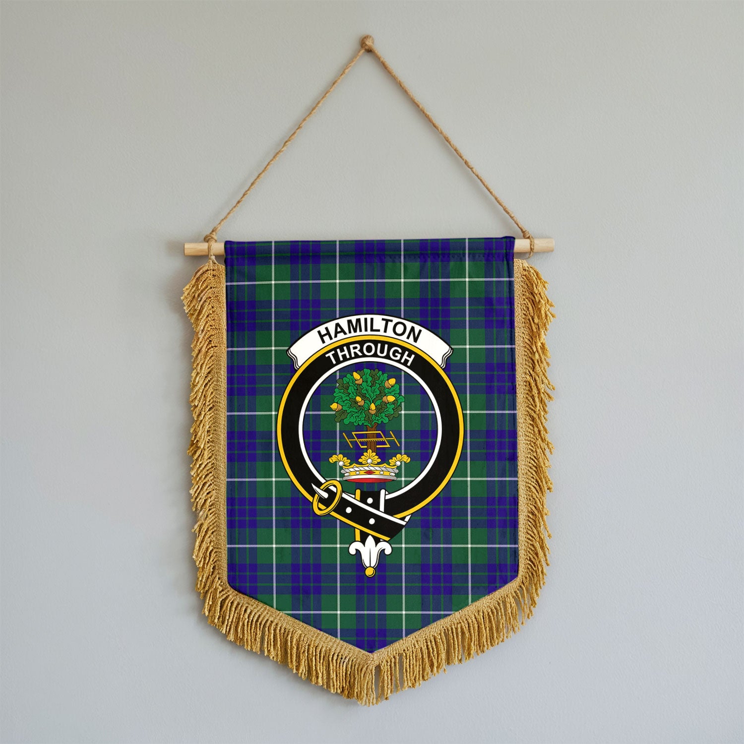 Hamilton Hunting Modern Tartan Crest Wall Hanging Banner - Wood Pole