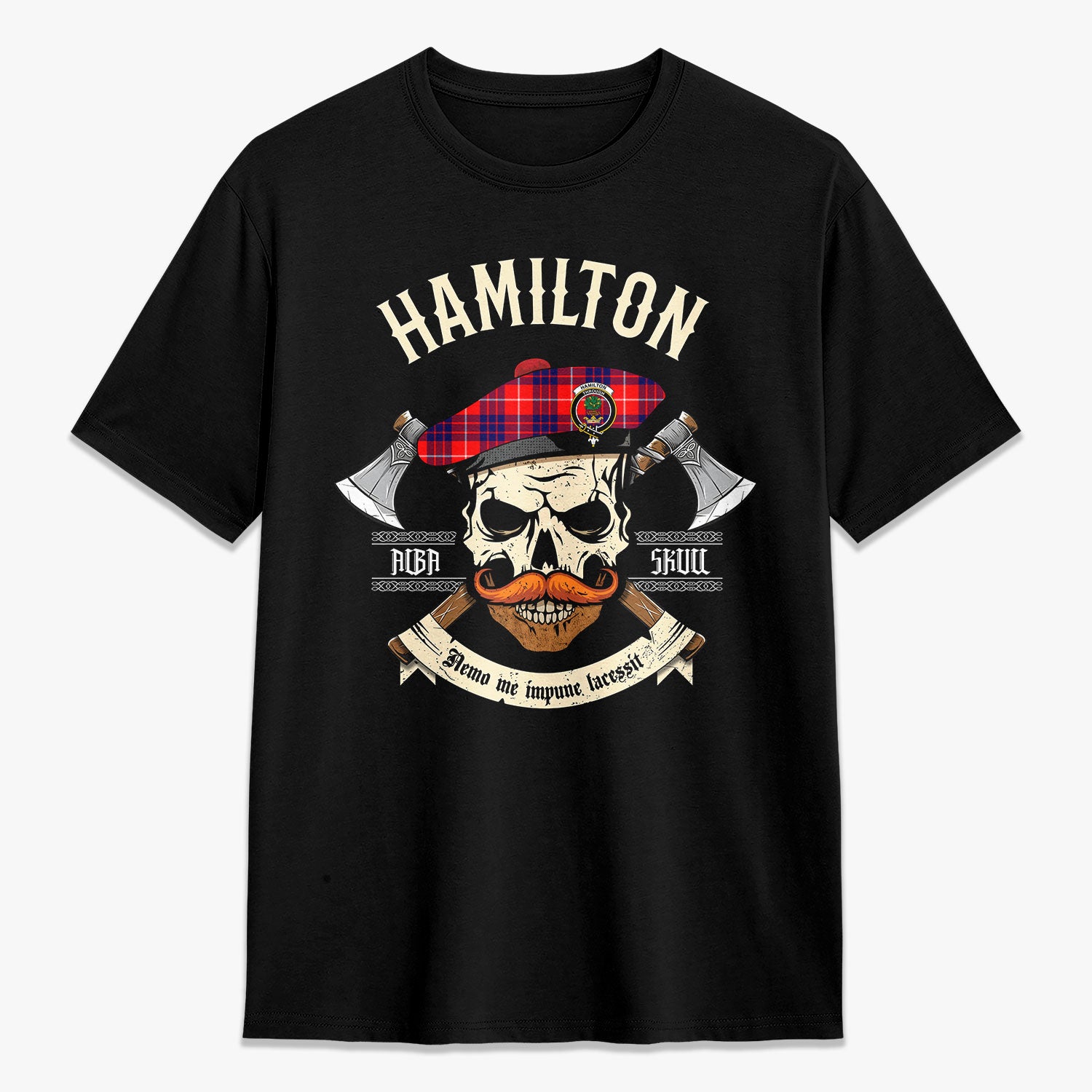 Hamilton Modern Tartan Crest 2D T-shirt - Alba Skull Style,